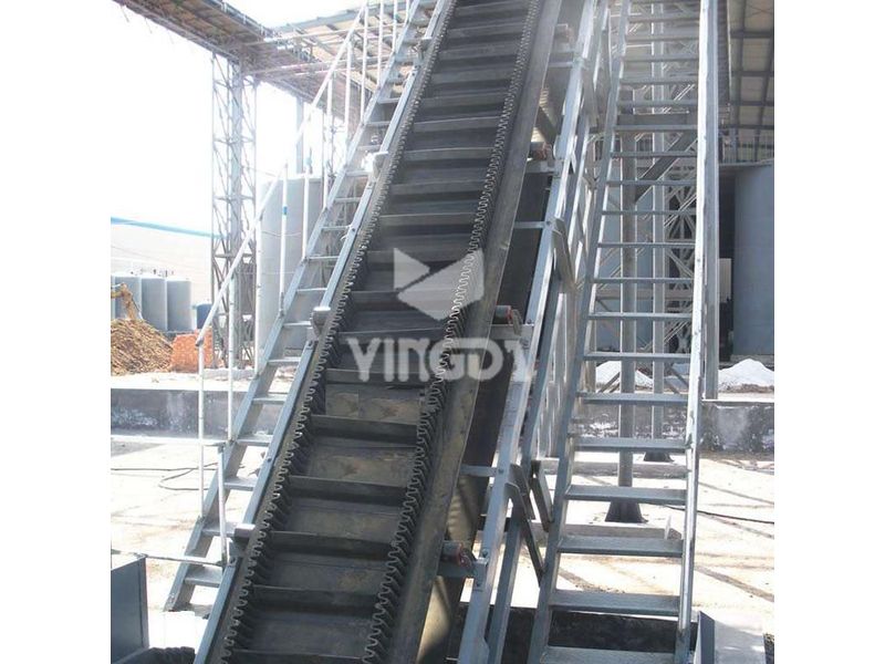 DJ大傾角擋帶式輸送機(jī)其結(jié)構(gòu)是在平形橡膠運(yùn)輸帶兩側(cè)粘上可自由伸縮的橡膠波形立式“裙邊”,在裙邊之間又粘有一定強(qiáng)度和彈性的橫隔板組成匣形斗,使物料在斗中進(jìn)行連續(xù)輸送。